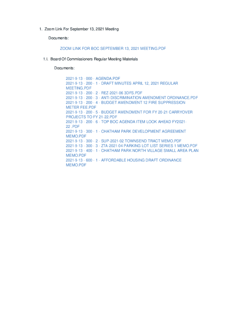 1. Zoom Link For September 13, 2021, Meeting Documents: ZOOM LINK FOR BOC SEPTEMBER 13, 2021, MEETING.PDF 1. I. Board Of Commissioners Regular Meeting Materials Documents: 2021913 000 AGENDA.PDF 2021913