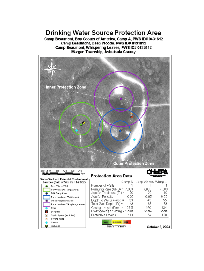 Susceptibility of Your Drinking Water Source to Contamination The aquifer that supplies drinking water to Camp Beaumont, BSA Camp A, Deep Woods, Whispering Leaves has a low susceptibility because:
