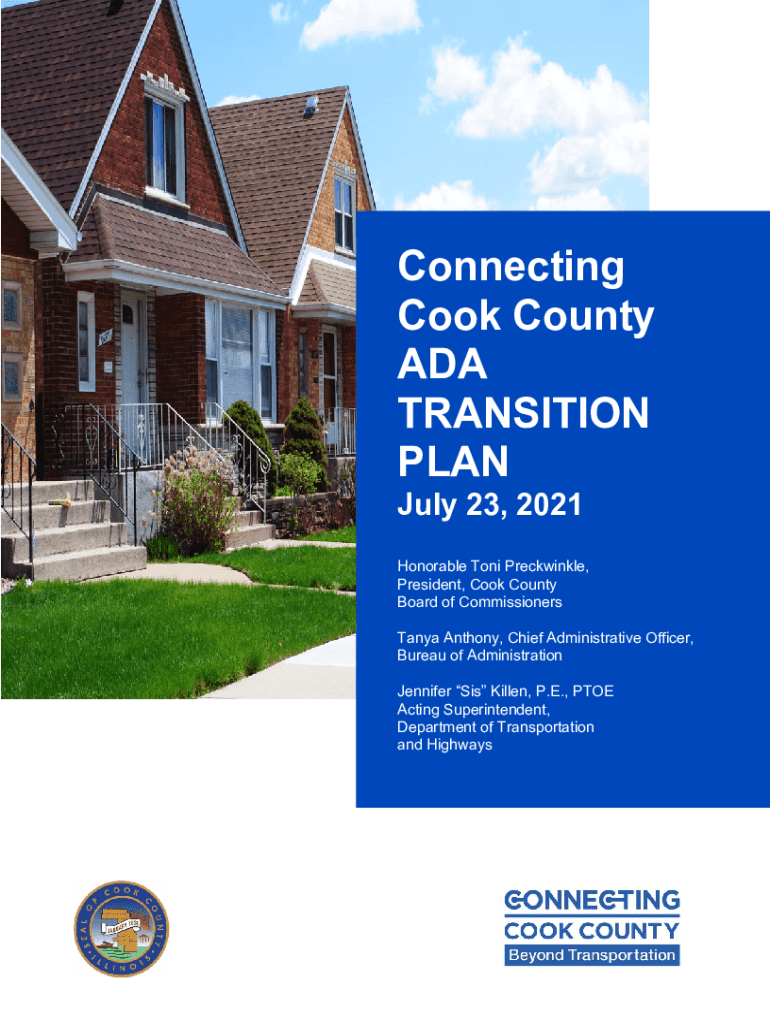 1Connecting Cook County ADA TRANSITION PLAN July 23, 2021, Honorable Toni Periwinkle, President, Cook County Board of Commissioners Tanya Anthony, Chief Administrative Officer, Bureau of Administration