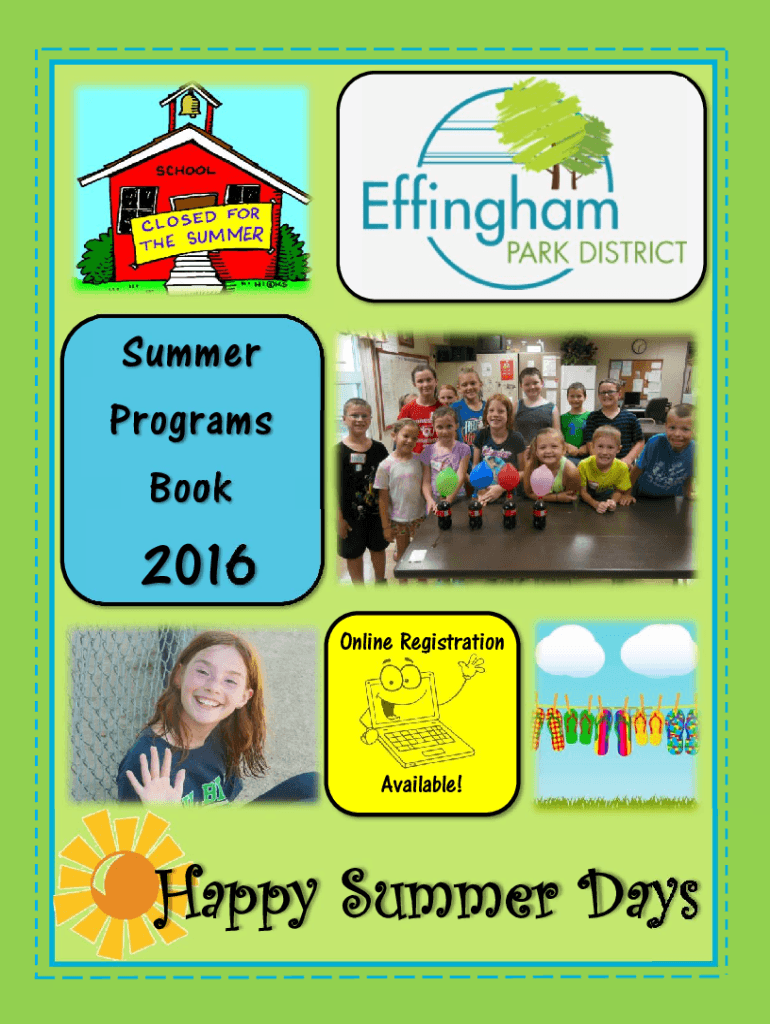 Summer Programs Book2016 Online RegistrationAvailable! Happy Summer DaysGeneral Information Effing ham Park District Mission Park Board Meetings Effing ham Park District is dedicated to providing