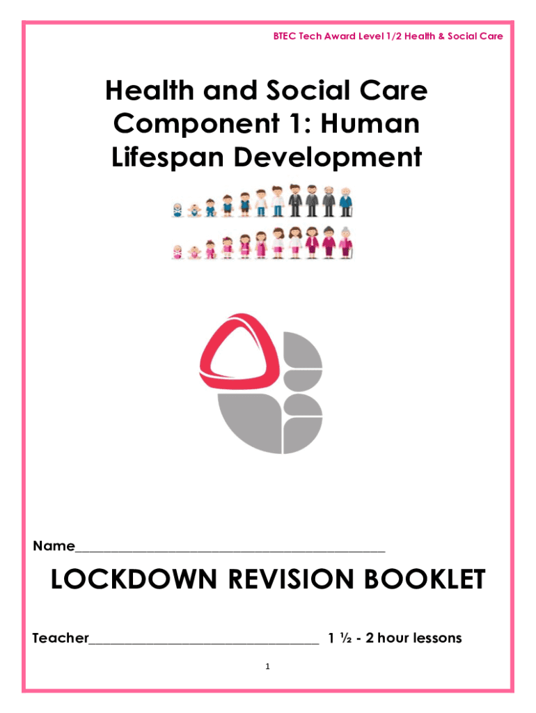 BTEC Tech Award Level 1/2 Health & Social Telehealth and Social Care Component 1: Human Lifespan Developmental___LOCKDOWN REVISION BOOKLET Teacher___ 1 2-hour lessons 1BTEC Tech Award Level 1/2 Health