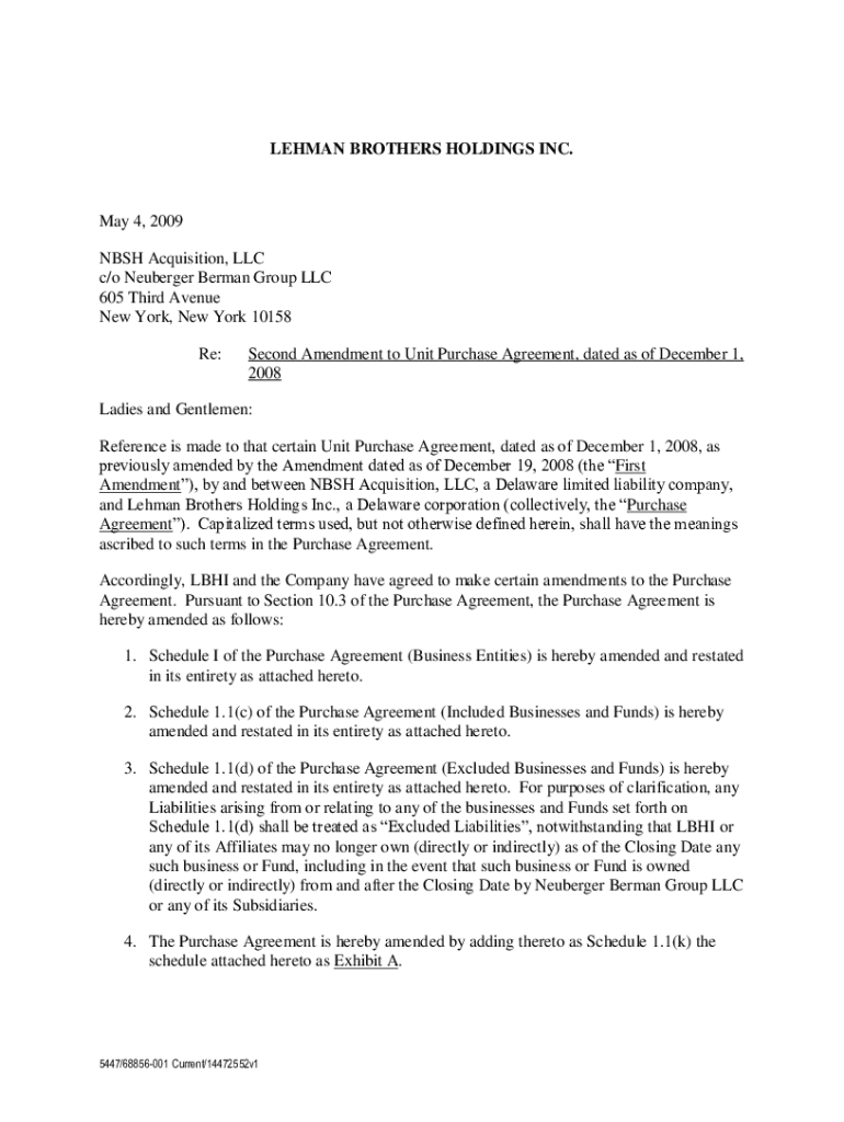 Lehman BROTHERS HOLDINGS INC. May 4, 2009, NASH Acquisition, LLC c/o Berger Berman Group LLC 605 Third Avenue New York, New York 10158 Re:Second Amendment to Unit Purchase Agreement, dated as of December