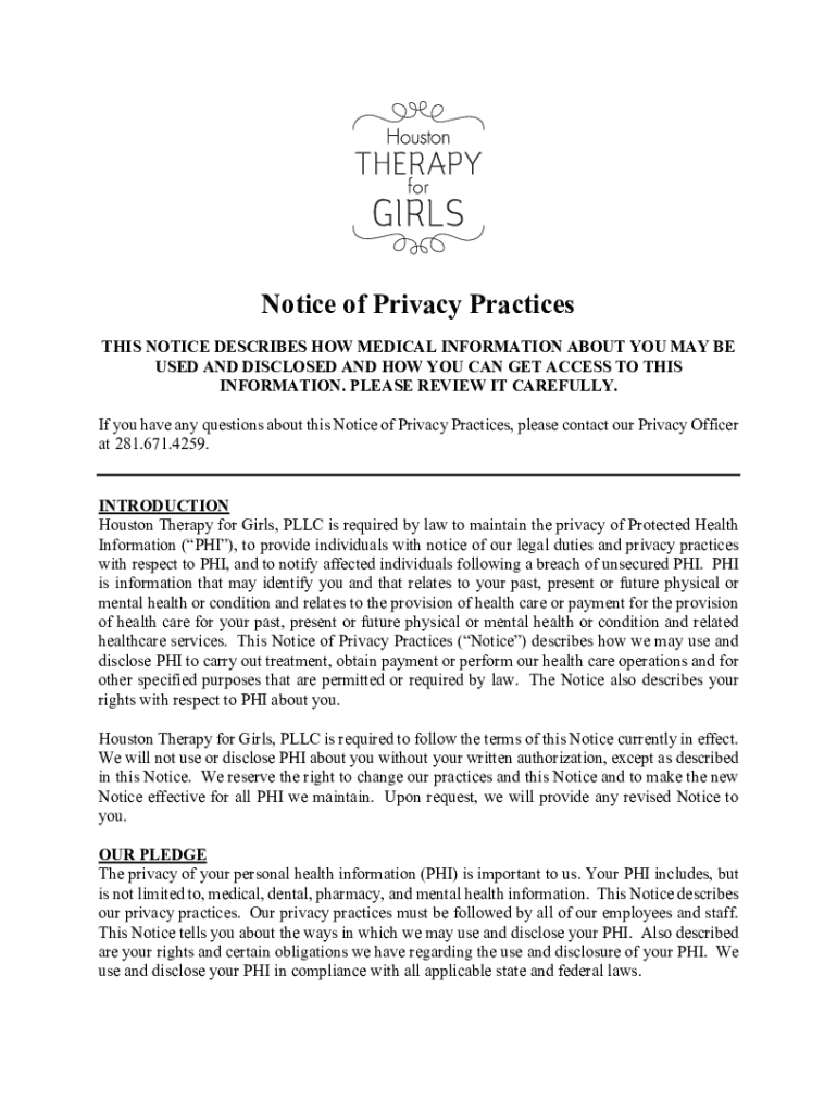 Get the free Notice of Privacy Practices - Houston Therapy for Girls