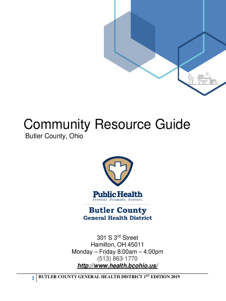 Community Resource Guide Butler County, Ohio301 S 3rd Street Hamilton, OH 45011 Monday Friday 8:00am 4:00pm (513) 8631770 http://www.health.bcohio.us/1BUTLER COUNTY GENERAL HEALTH DISTRICT 1ST EDITION