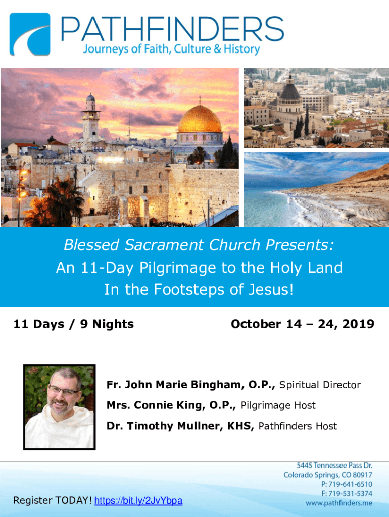 Blessed Sacrament Church Presents: An 11Day Pilgrimage to the Holy Land In the Footsteps of Jesus! 11 Days / 9 Nights October 14 24, 2019Fr. John Marie Bingham, O.P., Spiritual Director Mrs. Connie