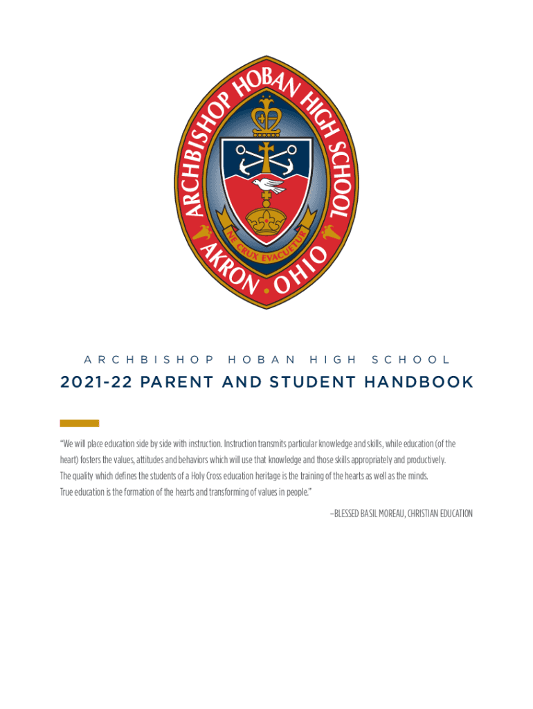 An R C H B I S H O PH O B A NH I G HS C H O L2021 22 PA RE N T A N D ST U DE N T H A N DB O We will place education side by side with instruction. Instruction transmits particular knowledge and skills,