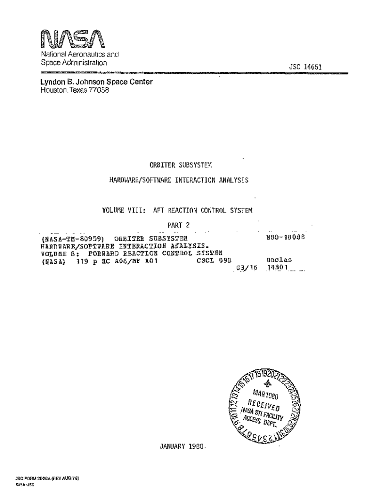 Navigational Aeronautics and Space Administrations 14651Lyndon B. Johnson Space Center Houston. Texas 77058ORBITER SUBSYSTEM HARDWARE/SOFTWARE INTERACTION ANALYSISVOLUME VIII:AFT REACTION CONTROL