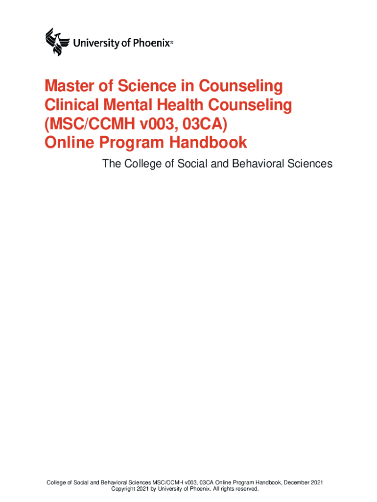 Master of Science in Counseling Clinical Mental Health Counseling (MSC/CCH v003, 03CA) Online Program Handbook The College of Social and Behavioral SciencesCollege of Social and Behavioral Sciences