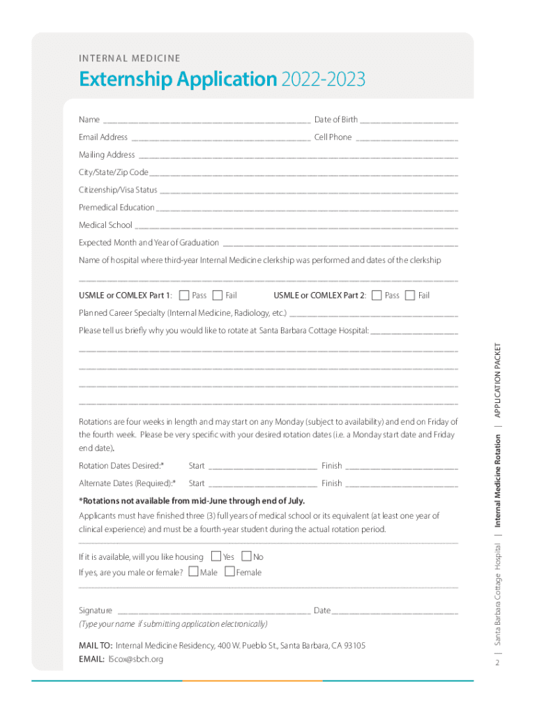 S A N TA B A R B A R A COT TA G E H O S P I TA Internal Medicine Rotation Application Package Dear Medical Student: This is an application package for a four-week Internal Medicine Sub rotation at