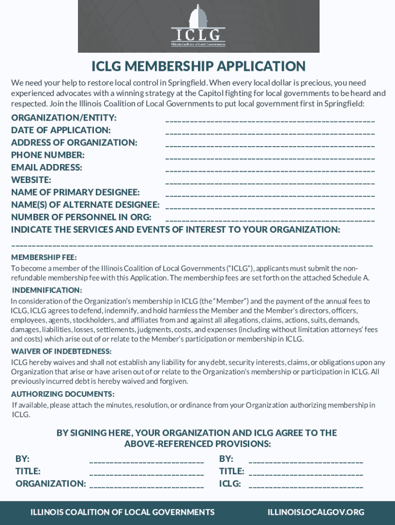 ICL MEMBERSHIP APPLICATION We need your help to restore local control in Springfield. When every local dollar is precious, you need experienced advocates with a winning strategy at the Capitol fighting