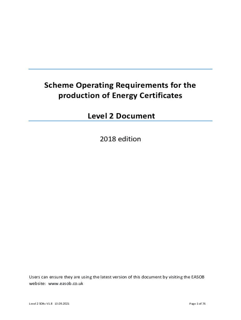 Scheme Operating Requirements for the production of Energy Certificates Level 2 Document 2018 editionUsers can ensure they are using the latest version of this document by visiting the EA SOB website: