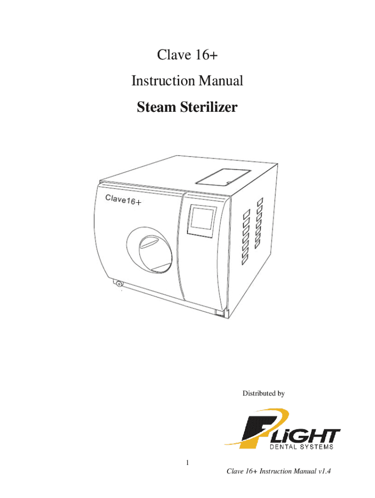 Clave 16+ Instruction Manual Steam SterilizerDistributed by1 Clave 16+ Instruction Manual v1.4Thank you for choosing our steam sterilizer. Prior to operating this device, please read the instruction