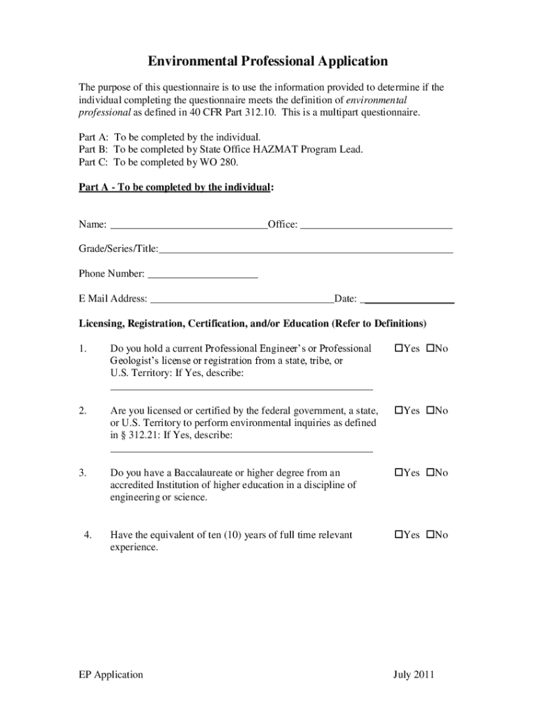 Get the free Environmental Professional Application