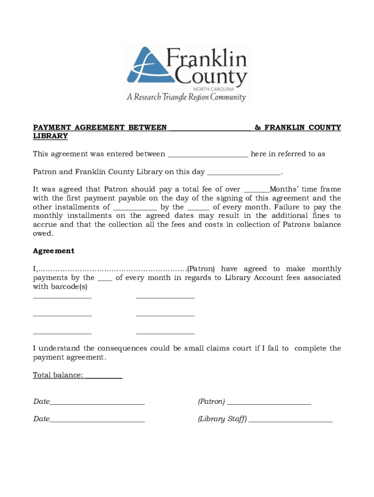 Get the free nmcdn.iolibrary20161214Payment-Plan-FormPAYMENT AGREEMENT BETWEEN & FRANKLIN...