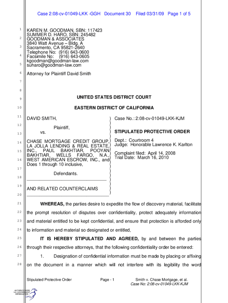 Case 2:08cv01049LKK GH Document 301 2 3 4 5 6Filed 03/31/09-Page 1 of 5KAREN M. GOODMAN, SON: 117423 SUMMER D. HARD, SON: 245482 GOODMAN & ASSOCIATES 3840 Watt Avenue Bldg. A Sacramento, CA 958212640