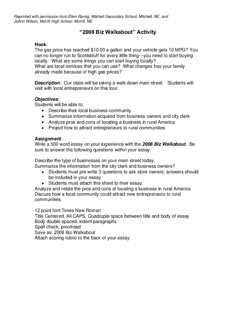 Reprinted with permission from Ellen Ramie, Mitchell Secondary School, Mitchell, NE, and Joann Wilson, Morrill High School, Morrill, NE.2008 Biz Walkabout Activity Hook: The gas price has reached