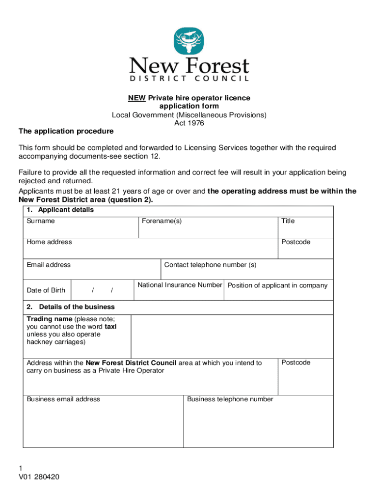 NEW Private hire operator license application form Local Government (Miscellaneous Provisions) Act 1976 The application procedure This form should be completed and forwarded to Licensing Services