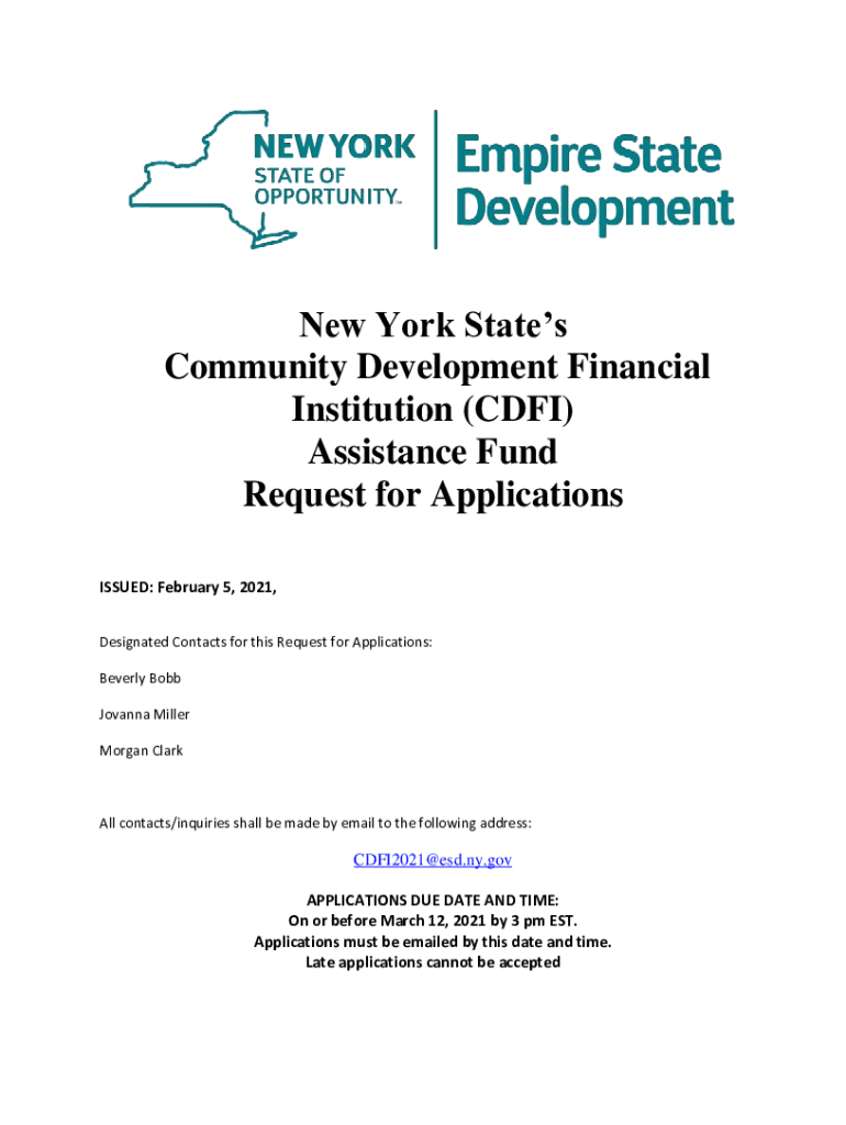 New York States Community Development Financial Institution (CFI) Assistance Fund Request for Applications ISSUED: February 5, 2021, Designated Contacts for this Request for Applications: Beverly