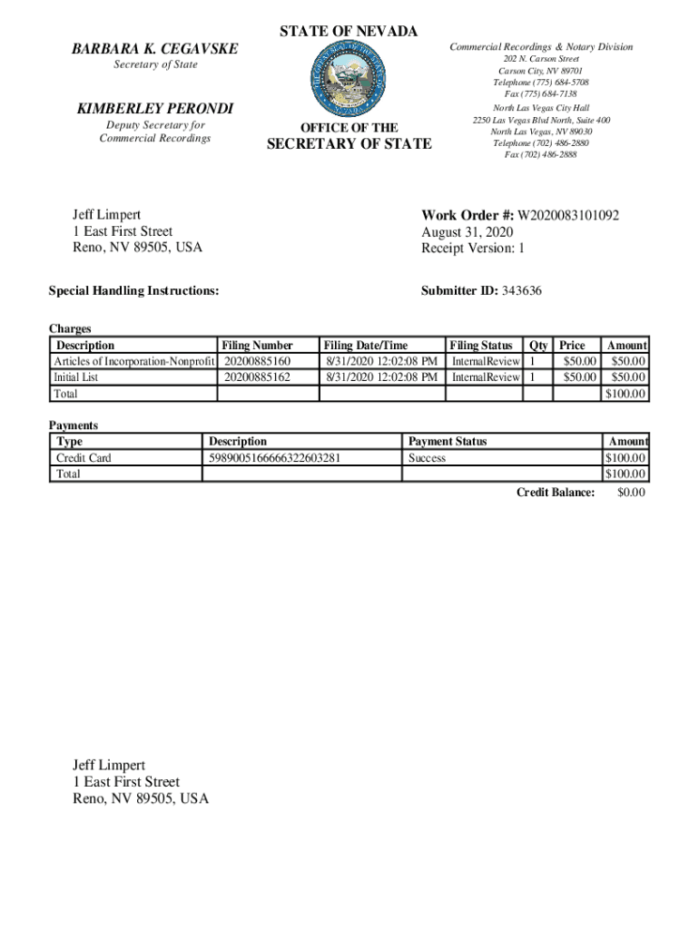How to fill out nevada secretary of state?