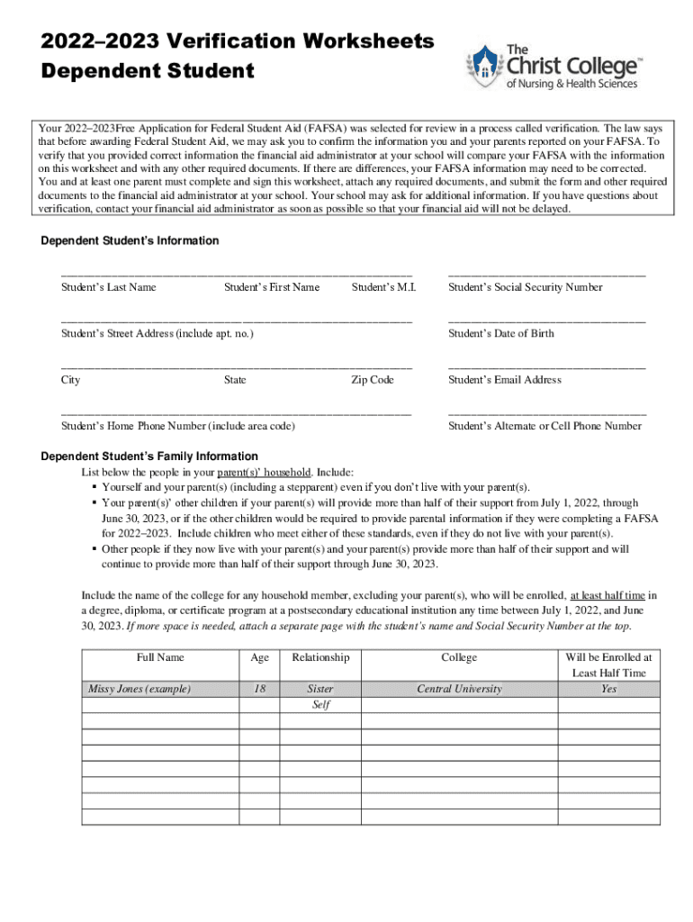 Edit your 2023 verification worksheet dependent form online