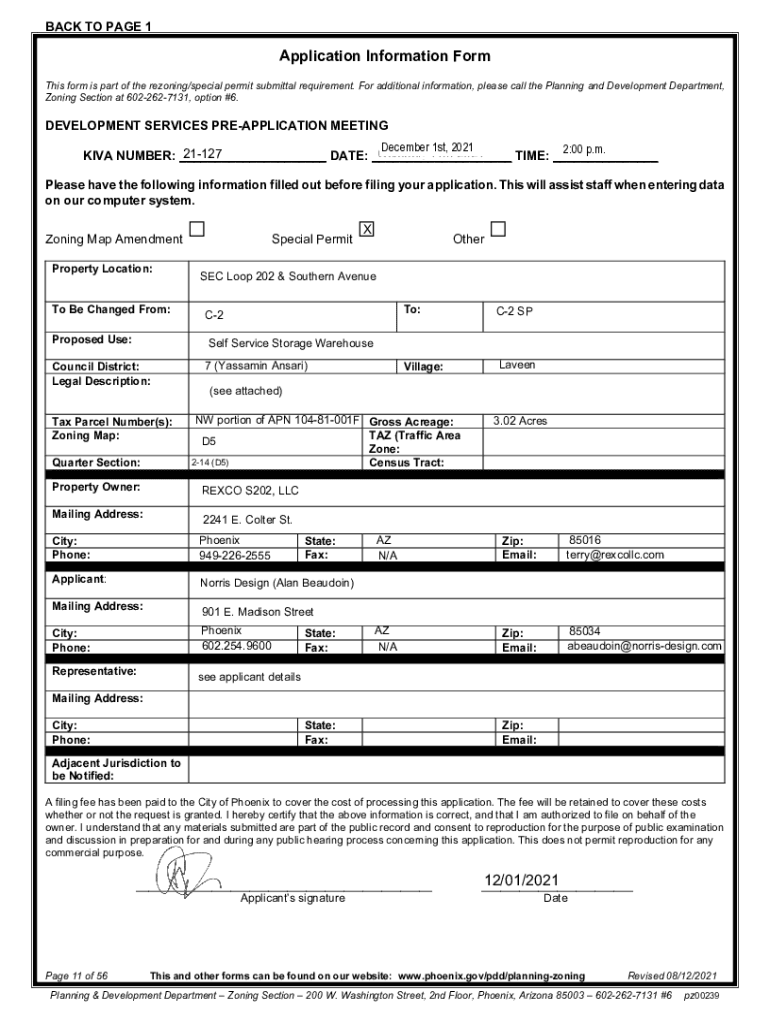 BACK TO PAGE 1Application Information Form This form is part of the rezoning/special permit submittal requirement. For additional information, please call the Planning and Development Department,