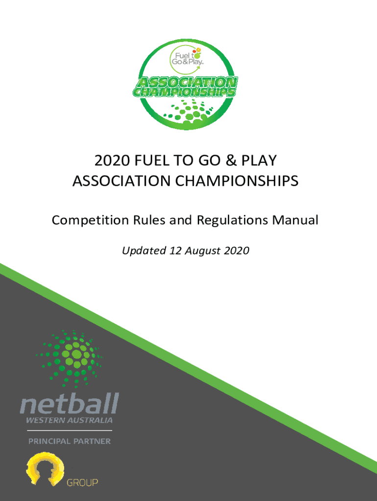 2020 FUEL TO GO & PLAY ASSOCIATION CHAMPIONSHIPS Competition Rules and Regulations Manual Updated 12 August 2020CONTENTS Netball Western Australia (NSA) Contacts4Administration Background Purpose