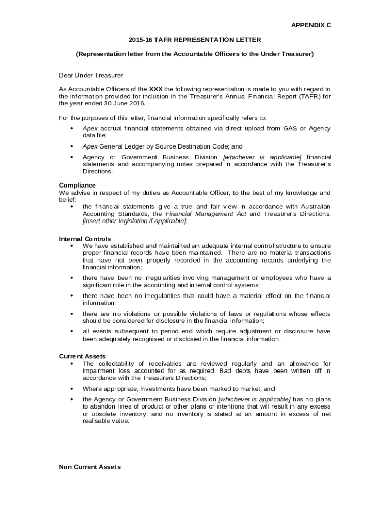 Instructions for the form Tax Representation Letter Sample ClausesFederal Financial Accounting and Auditing Technical ...Tax Representation Letter Sample ClausesFAQ -What Is a Representation Letter?