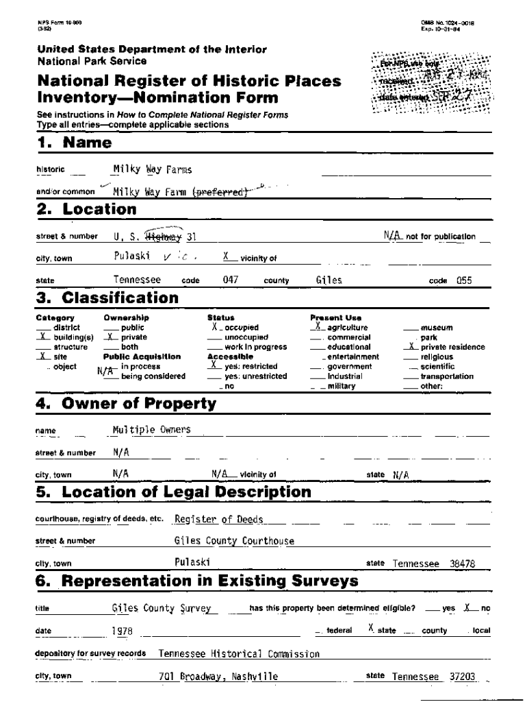 NFS Form 10900 (382)OMB No. 10240018 Exp.103184United States Department off the International Park ServiceNational Register of Historic Places InventoryNomination Form See instructions in How to Complete