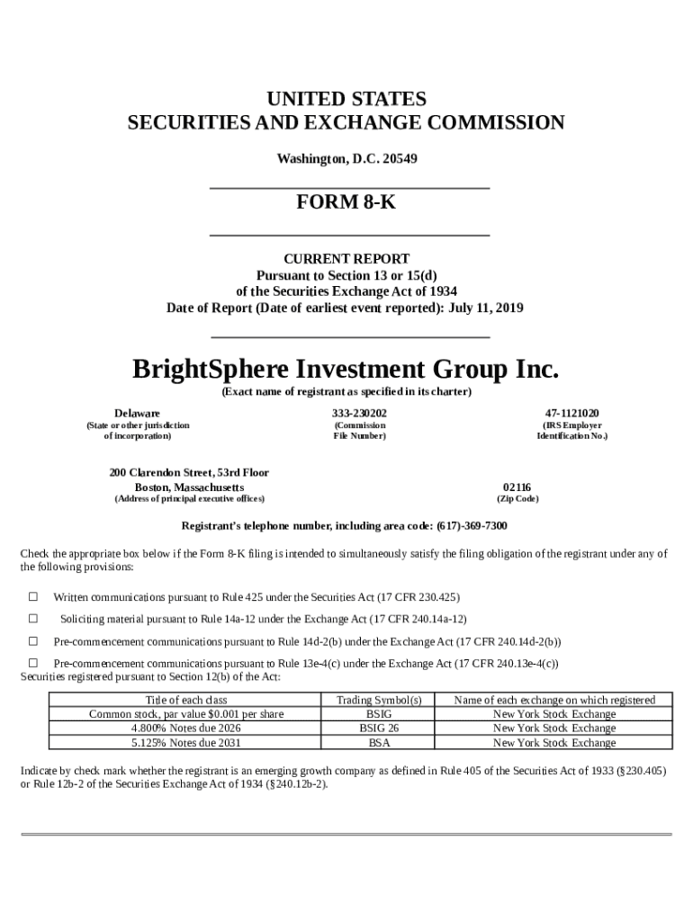 What is BrightSphere Investment Group Inc. (. EDGAR Online Pro Form?