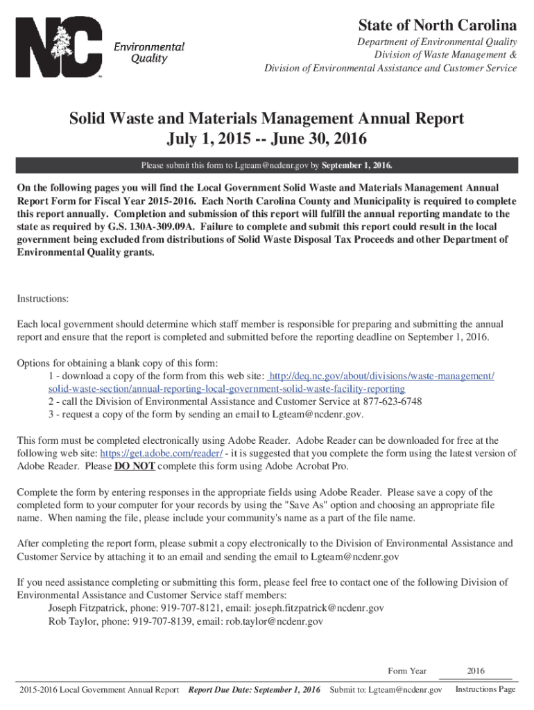 State of North Carolina Department of Environmental Quality Division of Waste Management & Division of Environmental Assistance and Customer ServiceSolid Waste and Materials Management Annual Report