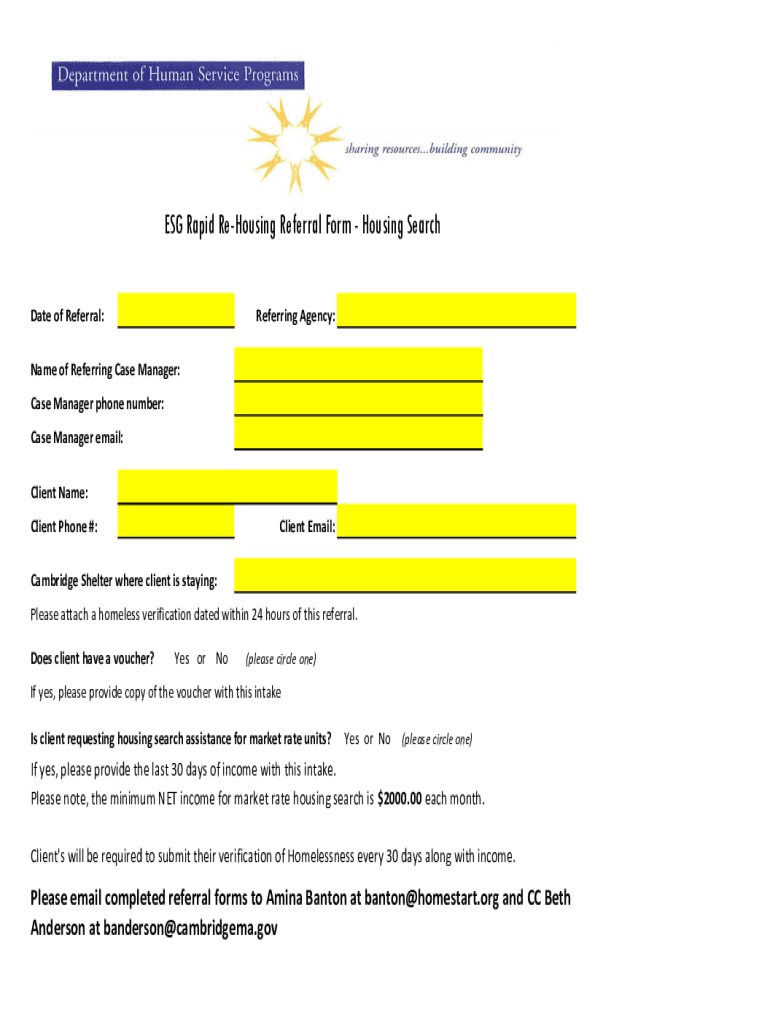 Get the free ESG Rapid Re-Housing Referral Form - Housing Search