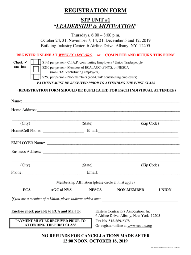 Eastern Contractors Association, Inc. Northeastern Subcontractors Association Associated General Contractors of New York StateSUPERVISORY TRAINING PROGRAM STP UNIT #1 LEADERSHIP & MOTIVATION DATE:Thursdays,