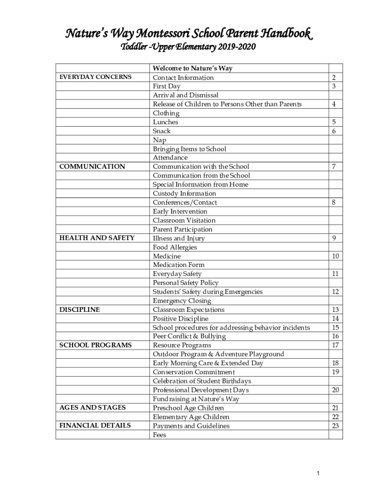 Get the free Natures Way Montessori School Parent Handbook