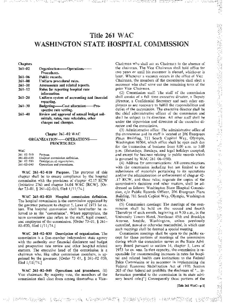 Get the free Title 261 WAC WASHINGTON STATE HOSPITAL COMMISSION