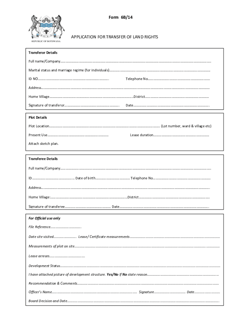 Form 6B/14APPLICATION FOR TRANSFER OF LAND RIGHTS