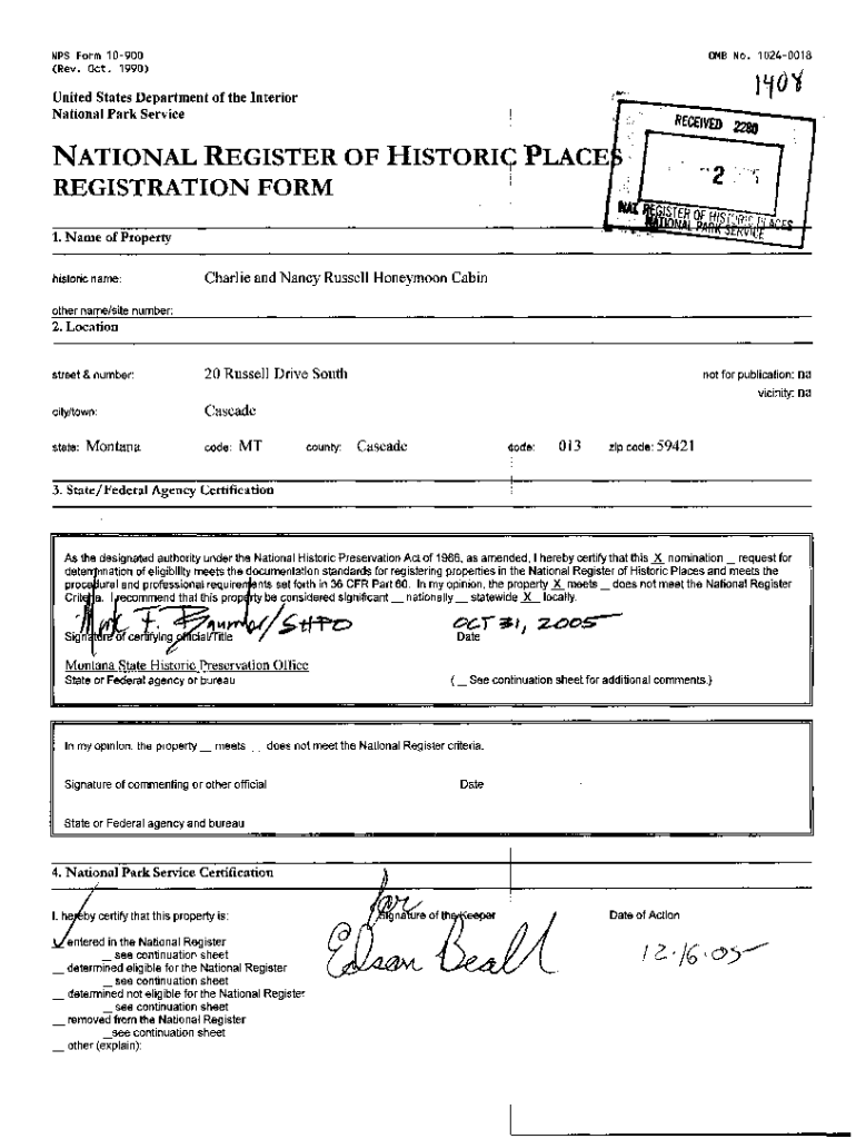 OMB No. 10240018NPS Form 10900 (Rev. Oct. 1990)United States Department of the Interior National Park ServiceNATIONAL REGISTER OF HISTORIC; PLACE REGISTRATION FORM 1. Name of Property Charlie and