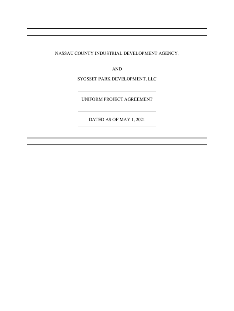 NASSAU COUNTY INDUSTRIAL DEVELOPMENT AGENCY, AND COSSET PARK DEVELOPMENT, LLC ___ UNIFORM PROJECT AGREEMENT ___ DATED AS OF MAY 1, 2021 ___UNIFORM PROJECT AGREEMENT THIS UNIFORM PROJECT AGREEMENT