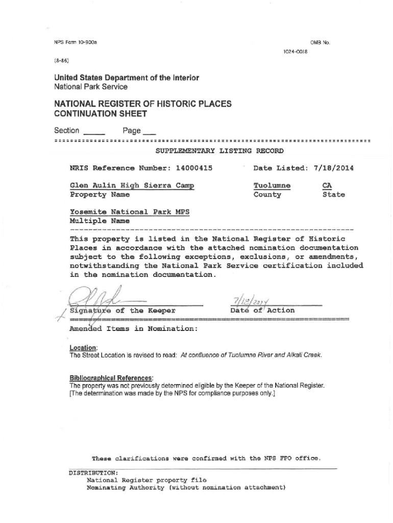 NPS Form 10900a0MB No. 10240018(886)United States Department of the Interior National Park ServiceNATIONAL REGISTER OF HISTORIC PLACES CONTINUATION SHEET Section Page_ SUPPLEMENTARY LISTING RECORD