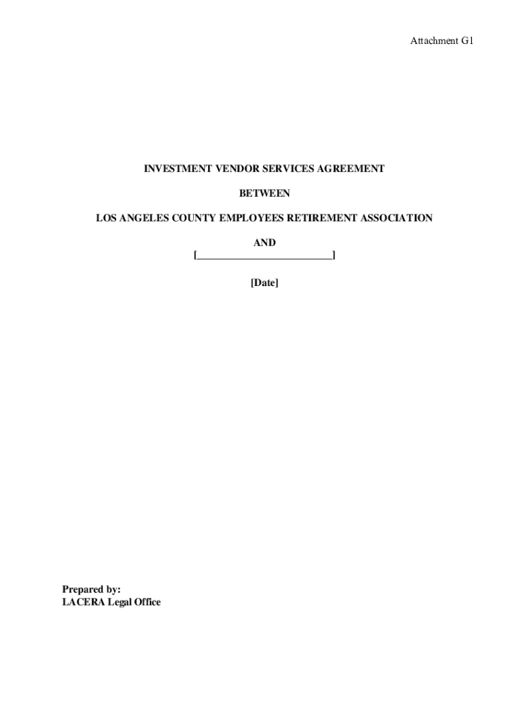 Attachment G1INVESTMENT VENDOR SERVICES AGREEMENT BETWEEN LOS ANGELES COUNTY EMPLOYEES RETIREMENT ASSOCIATION AND [___] [Date×Prepared by: LAC ERA Legal OfficeINVESTMENT VENDOR SERVICES AGREEMENT