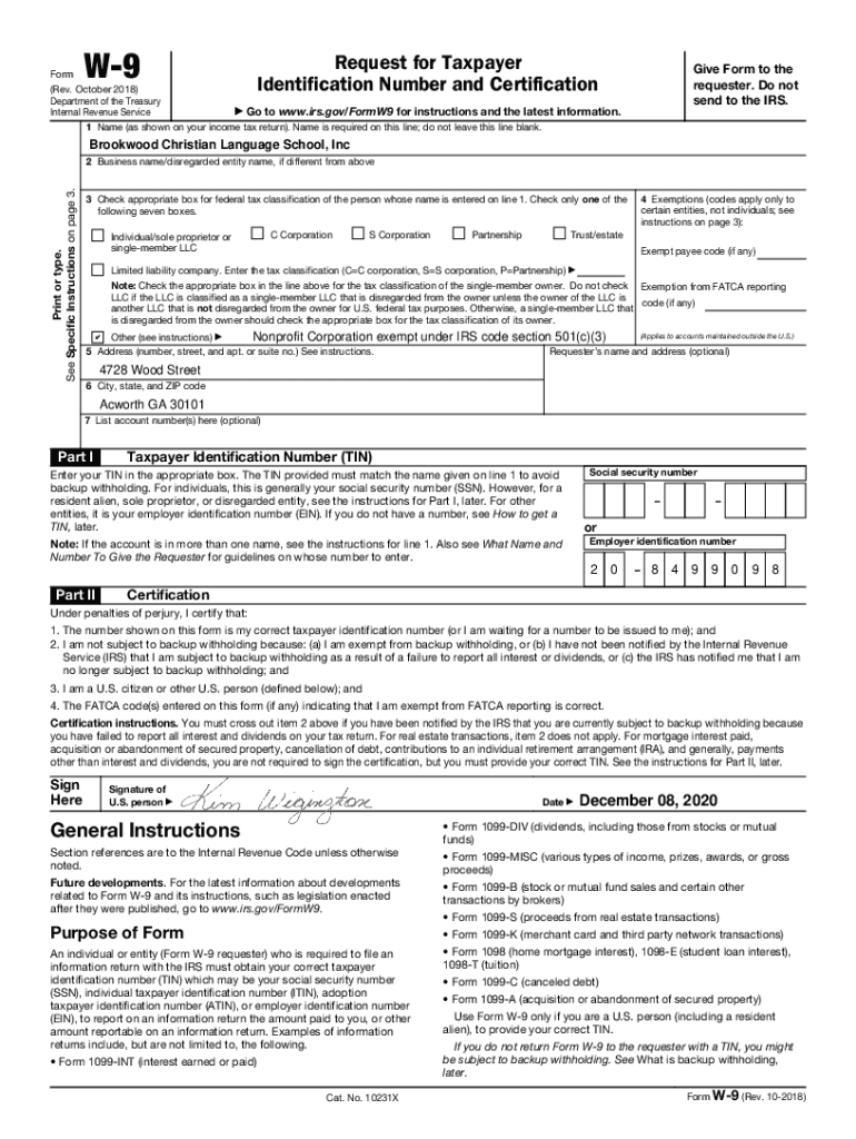 W9Form (Rev. October 2018) Department of the Treasury Internal Revenue ServiceRequest for Taxpayer Identification Number and Certification Give Form to the requester. Do not send to the IRS. Go to