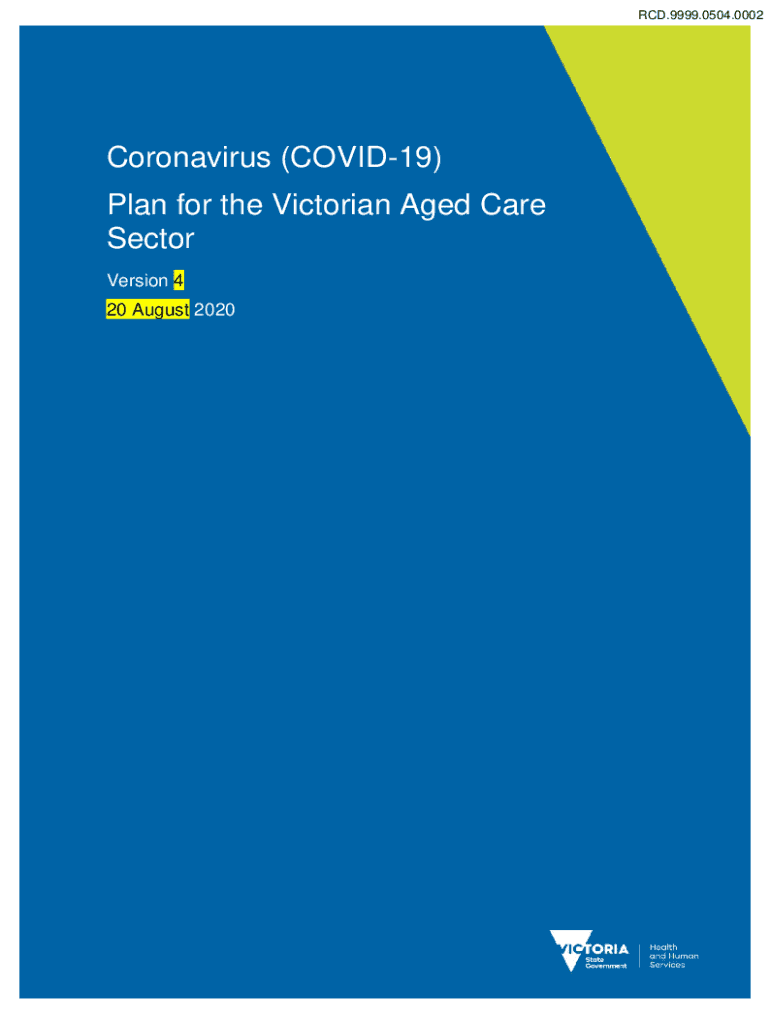 RCD.9999.0504.0002Coronavirus (COVID-19) Plan for the Victorian Aged Care Sector Version 4 20 August 2020COVID19 Plan for the Victorian Aged Care Sector 20 August 2020OFFICIALRCD.9999.0504.0003RCD.9999.0504.0004Revision