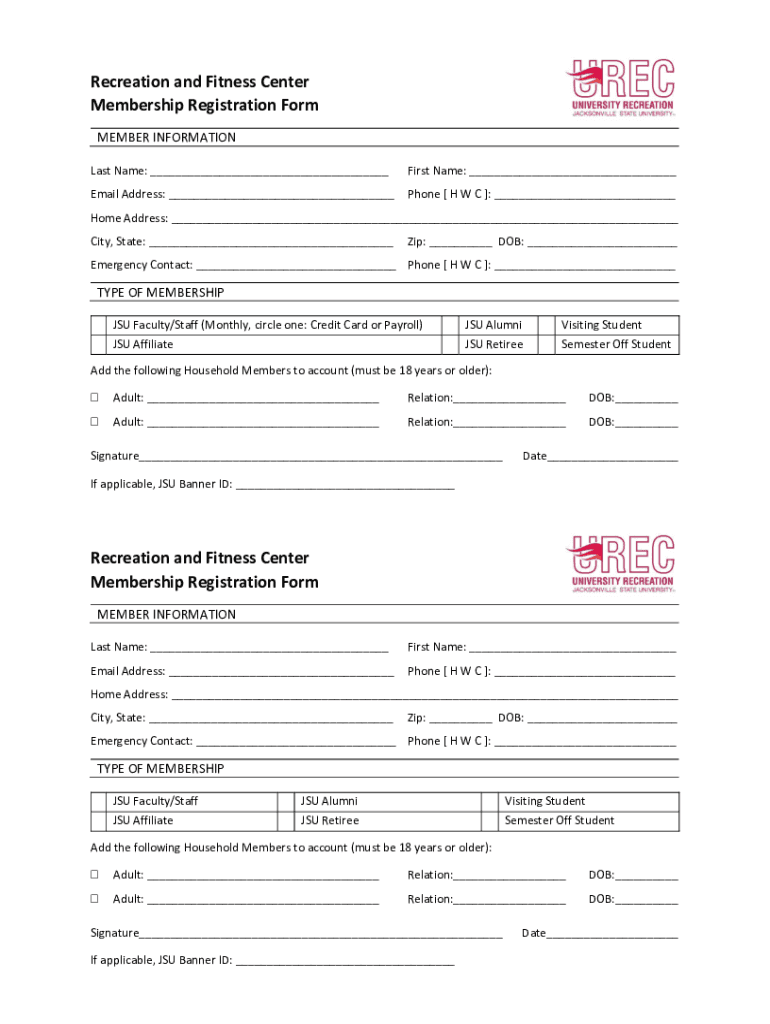How to fill out jsueduurecmembershiprecreation and fitness center