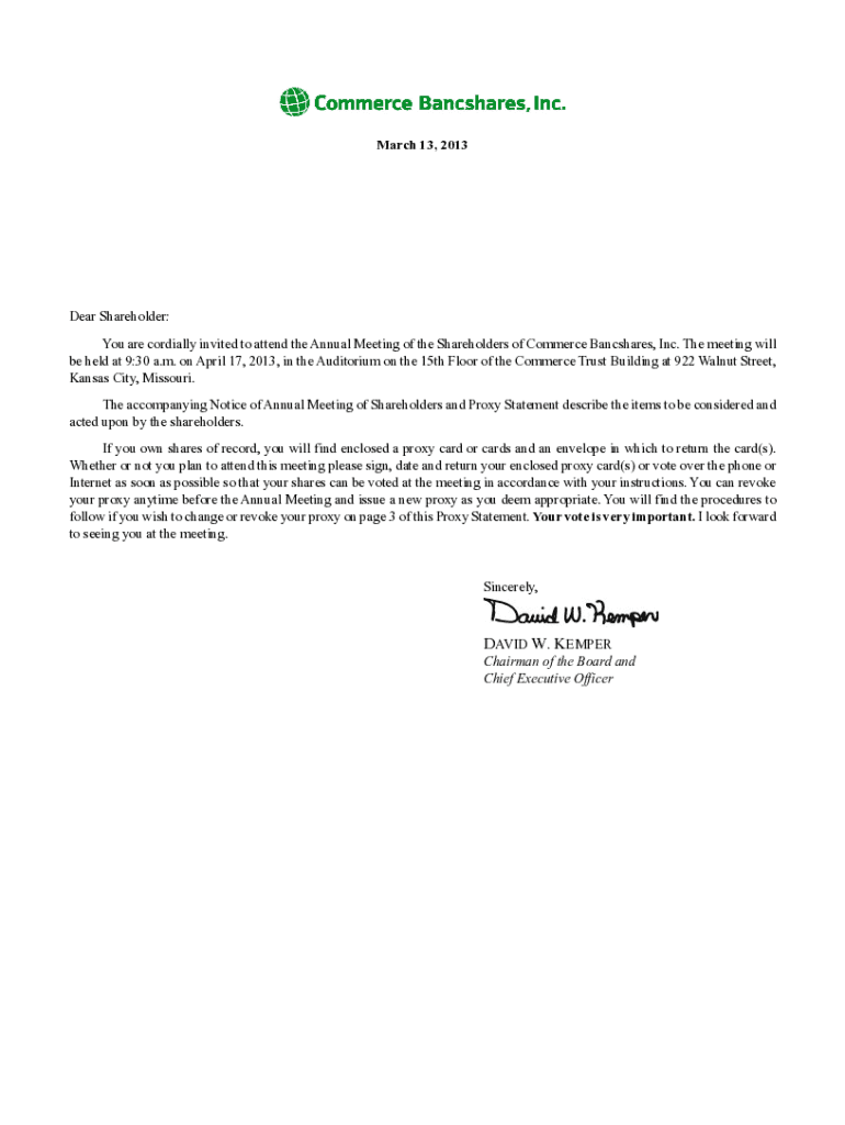 March 13, 2013Dear Shareholder: You are cordially invited to attend the Annual Meeting of the Shareholders of Commerce Ranchers, Inc. The meeting will be held at 9:30 a.m. on April 17, 2013, in the