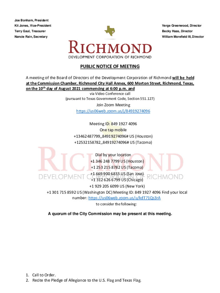 Get the free via Video Conference call (pursuant to Texas Government ...
