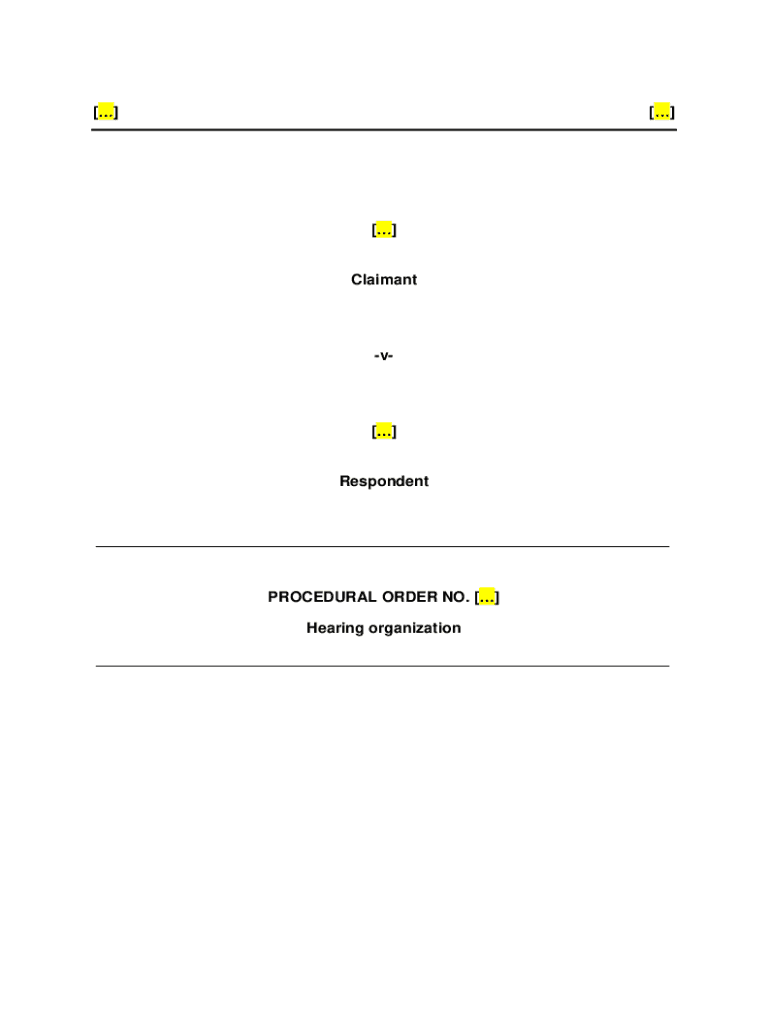 [][][]Claimant[]Respondent___PROCEDURAL ORDER NO. [] Hearing organization ___I.PROCEDURAL BACKGROUND1.[]II.ADVANCE TESTING2. A trial videoconference shall be held on [] at [] on the video conferencing