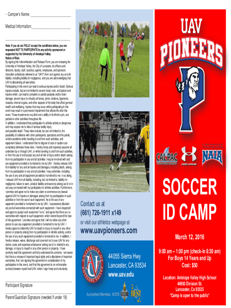 _ Campers Name: ___ Medical Information:___ ___ Note: If you do not FULLY accept the conditions below, you are requested NOT TO PARTICIPATE in any activity sponsored or supported by the University