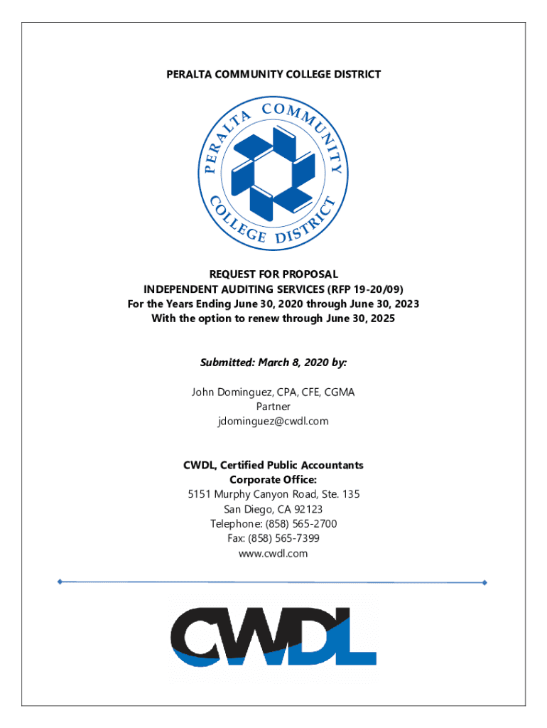 PENALTY COMMUNITY COLLEGE DISTRICTREQUEST FOR PROPOSAL INDEPENDENT AUDITING SERVICES (RFP 1920/09) For the Years Ending June 30, 2020, through June 30, 2023, With the option to renew through June