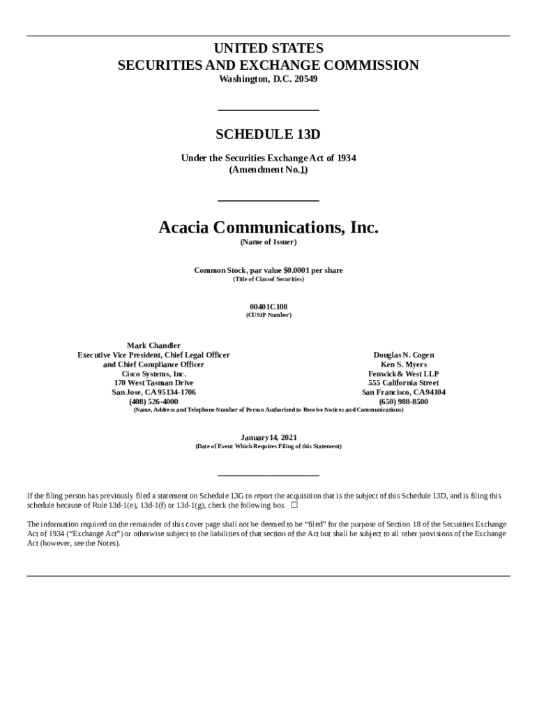 What is Acacia Communications, Inc. (. EDGAR Online Pro Form?