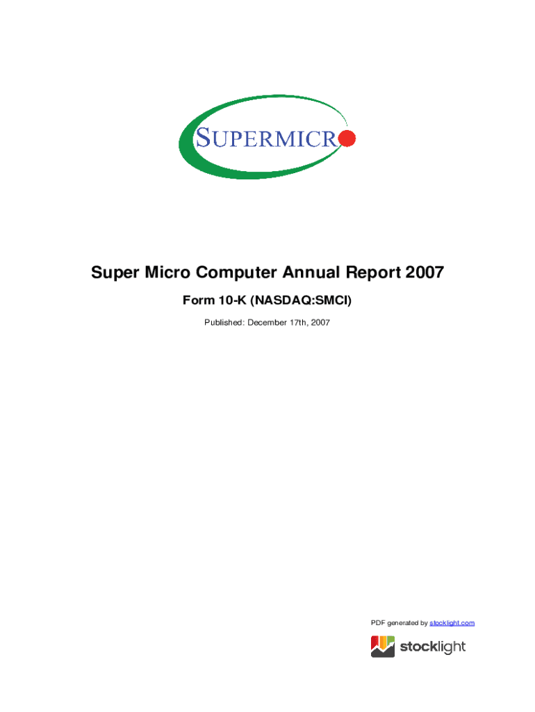 wwwannualreportscouksnasdaqsmci2007super Micro Computer Inc is not the form you're looking for?Search for another form here.
