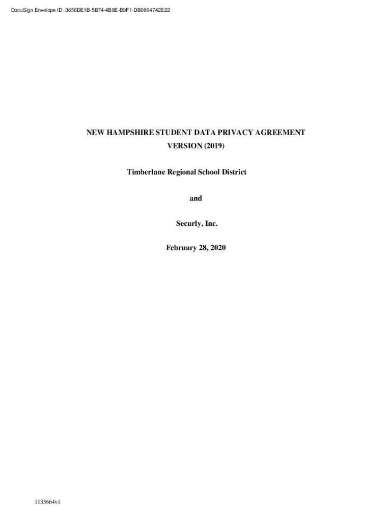DocuSign Envelope ID: 3656DE1B5B744B8EB9F1DB0604742E22NEW HAMPSHIRE STUDENT DATA PRIVACY AGREEMENT VERSION (2019) Timberlane Regional School District and Securely, Inc. February 28, 20201135664v1DocuSign